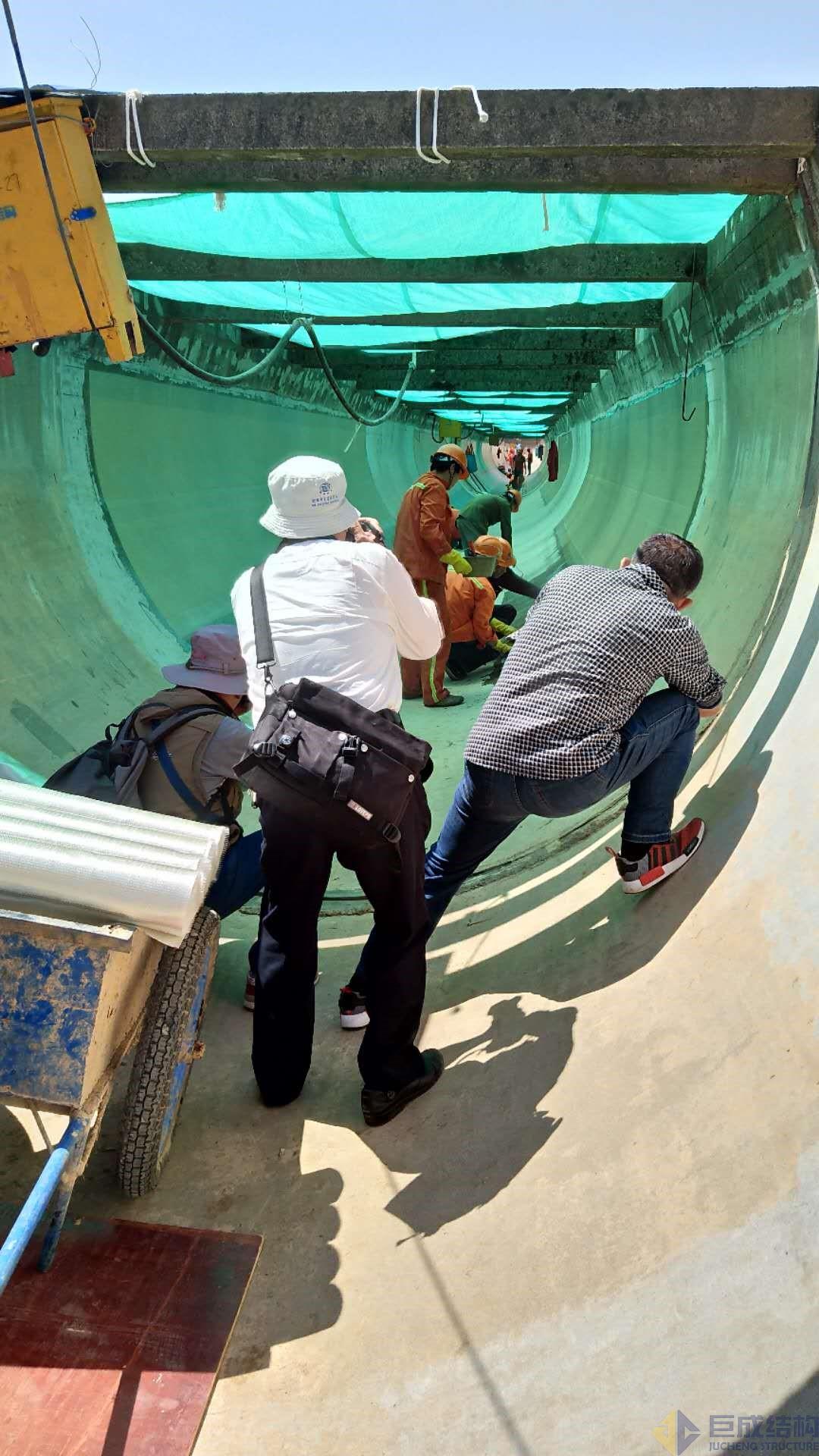何書記一行到現(xiàn)場查看了施工情況,聽我方講解了施工工藝,然后來到了渡槽內(nèi)壁施工現(xiàn)場取景拍照。一位攝影師說,自己做了幾十年工人,覺得工人勞動的照片才是最美的。