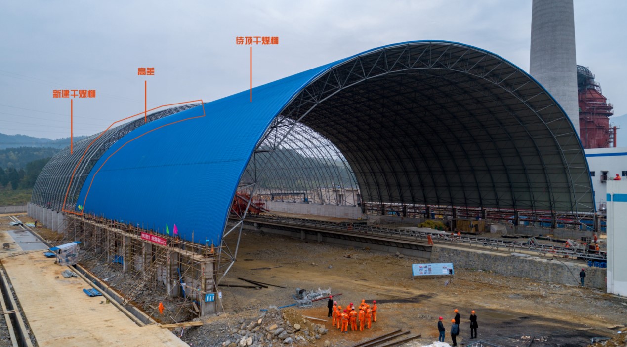 2019年3月29日,巨成結(jié)構(gòu)在西南山區(qū)某電廠完成71米大跨度鋼結(jié)構(gòu)整體頂升,頂升高度1.8m。該大跨度鋼結(jié)構(gòu)干煤棚與新購鏟煤機(jī)高度差1.5m,采用了巨成鋼滑道頂升專利方案,綜合造價(jià)僅為拆除重建的四分之一。