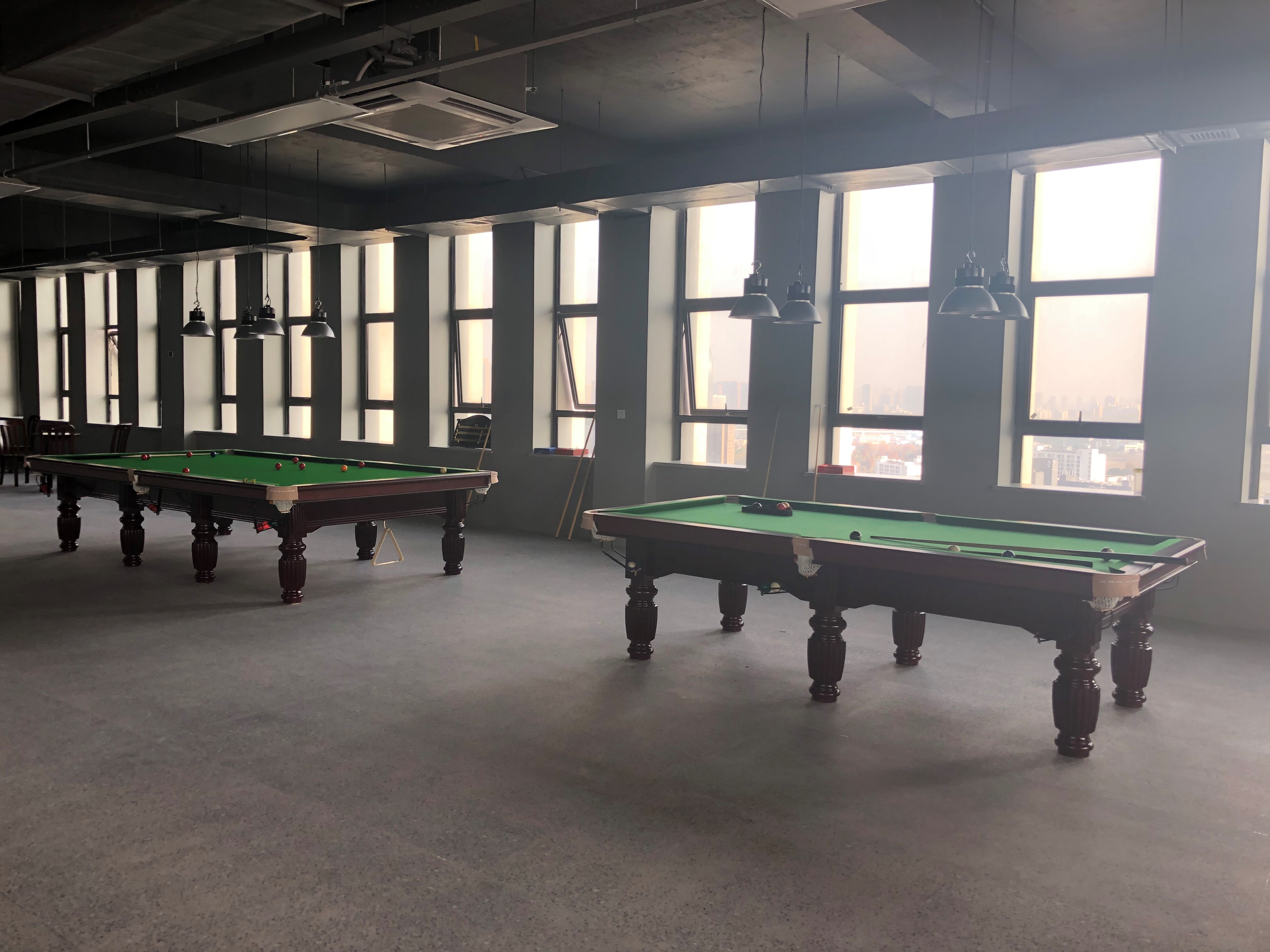 臺(tái)球區(qū)配置2套臺(tái)球設(shè)施,為滿足不同臺(tái)球愛(ài)好者的需要,其中一臺(tái)為黑八比賽用桌,一臺(tái)為斯諾克比賽用桌。
