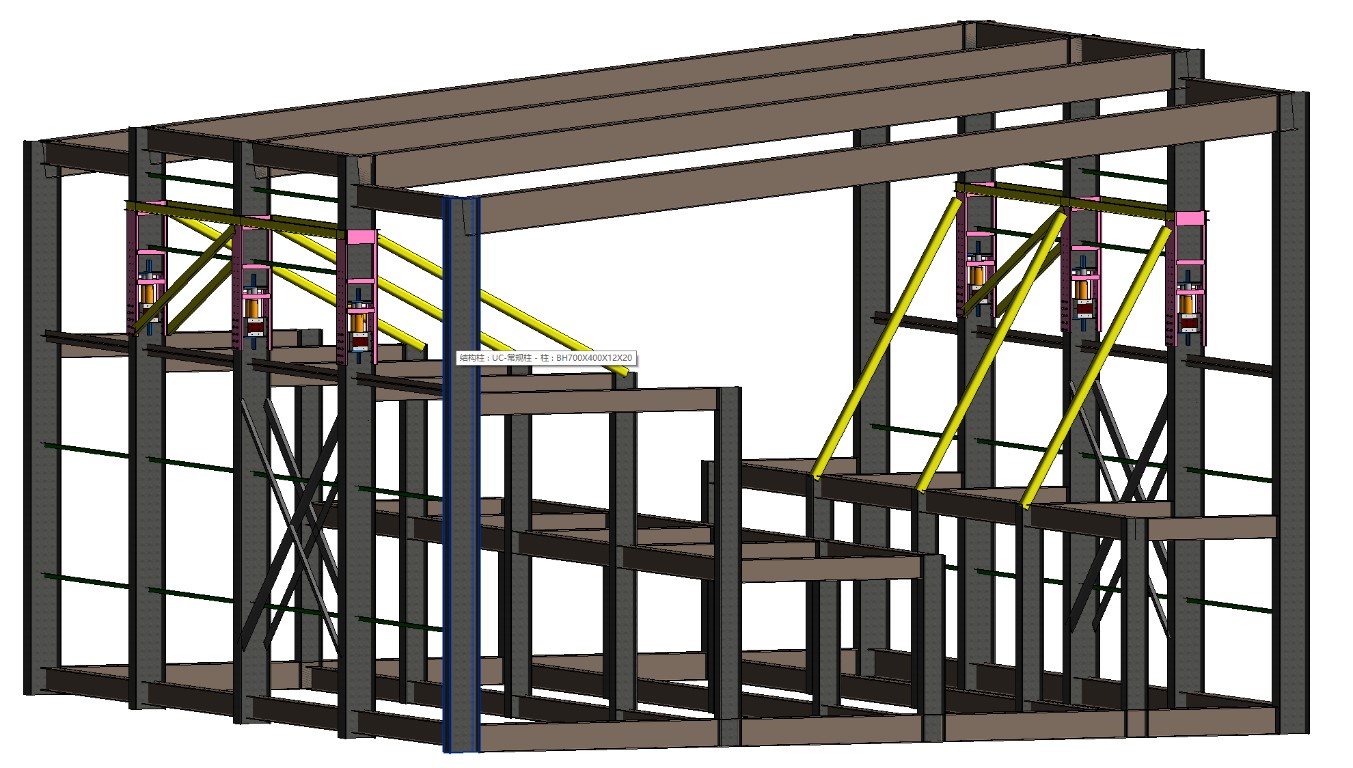 煉鋼廠房頂層框架整體頂升1.826m