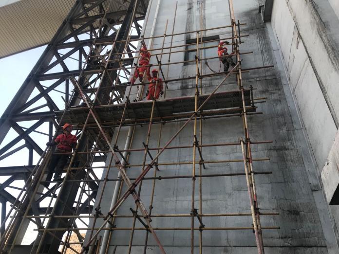 煙囪改造屬于超危項(xiàng)目,需要在離地50米的高處搭設(shè)鋼管架。施工區(qū)域地勢(shì)空曠、風(fēng)力強(qiáng)勁,所有施工人員嚴(yán)格遵守高處作業(yè)安全規(guī)定,做好自我防護(hù),注意“四不傷害”,不野蠻施工,不冒險(xiǎn)施工,克服僥幸心理,合理安排工作。在大家的共同努力下煙囪外架已經(jīng)順利搭設(shè)完成,贏得了電廠的一致認(rèn)可與好評(píng)。