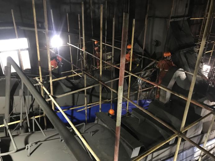 項(xiàng)目施工部位存在很多運(yùn)行中的設(shè)備,包括運(yùn)行的皮帶、汽機(jī)、碎煤機(jī)等,安全風(fēng)險(xiǎn)高。為了消除安全隱患,項(xiàng)目部安排專人專班搭設(shè)鋼管架,做好隔離防護(hù),落實(shí)防火措施。工人師傅陳長(zhǎng)豹、高作雄等憑借過硬的操作技能、良好的安全意識(shí),始終沖在最前線,帶領(lǐng)大家搭設(shè)鋼管架。面對(duì)運(yùn)行中的各種設(shè)備、管道管線等障礙物,大家吊裝材料慎之又慎,傳遞鋼管小心翼翼,搭設(shè)鋼管認(rèn)認(rèn)真真,確保不碰壞、不砸壞、不墜物,不發(fā)生任何安全事故,安全高效地推進(jìn)施工。