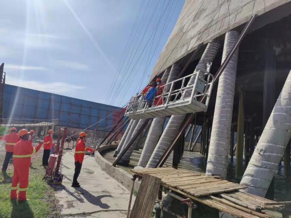 山東天源熱電有限公司三電廠2#涼水塔加固項(xiàng)目,位于山東省淄博市桓臺(tái)縣馬橋鎮(zhèn),2011 年投入使用,為5500㎡的雙曲線自然通風(fēng)涼水塔,總高度為 115.00m,塔筒外壁涂裝21382㎡,內(nèi)壁涂裝21230㎡,合同總造價(jià)為1565.5萬(wàn)元。本工程從2021年8月8日開(kāi)始施工,預(yù)計(jì)將于2022年6月底完工。