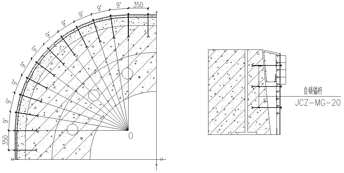 采?混凝?缺陷修補及?鎖錨桿進?加固,?鎖錨桿穿過結(jié)合?,在分層處將兩部分連成整體。根據(jù)計算結(jié)果,基礎(chǔ)靠近臺柱的內(nèi)圈部分應(yīng)?較?,其他區(qū)域則應(yīng)?較?,因此錨桿的分布設(shè)計靠近臺柱的內(nèi)圈部分較密,?外圈其他區(qū)域則較疏。
