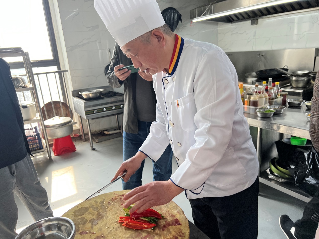 公司開展本次“大廚教我學(xué)做菜“的烹飪培訓(xùn),旨在提高巨成食堂廚師烹飪技能水平,更好地為職工提供優(yōu)質(zhì)的餐飲服務(wù),同時(shí)也滿足員工提升廚藝的心愿。總部廚師、幫廚以及各部門有興趣的員工二十余人參加了培訓(xùn)活動(dòng)。管大廚準(zhǔn)備了十道菜的培訓(xùn)大餐,有五彩蝦仁、小炒黃牛肉、粉蒸青魚塊、蒸茼蒿、農(nóng)家小炒肉、魚香肉絲等。
