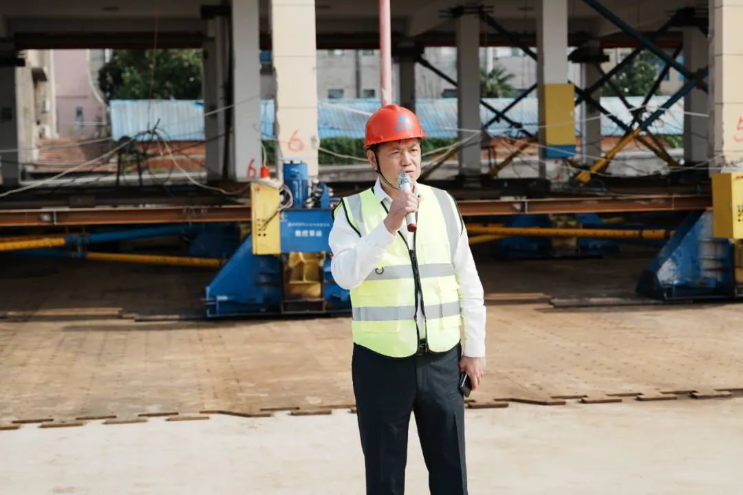 今天,這既是一個慶典儀式,也是一個新聞發(fā)布會。中煤鄂州電廠擴(kuò)建項(xiàng)目消防站今天平移到位,我們在這里舉行慶典慶祝。巨成鋼滑道移位技術(shù),之前做了很多室內(nèi)試驗(yàn)都很成功,但是沒有做工程試驗(yàn)。我們的好伙伴中南電力設(shè)計院,允許我們在這里做工程試驗(yàn)。大家知道,第一次旋轉(zhuǎn)、第一次平移,大家很揪心。但是第二次旋轉(zhuǎn),第二次平移,我們?nèi)〉昧送黄菩赃M(jìn)展,創(chuàng)造了新的速度紀(jì)錄。所以,今天也是一個新聞發(fā)布會,是鋼滑道旋轉(zhuǎn)與鋼滑道平移工程試驗(yàn)成功的新聞發(fā)布會。